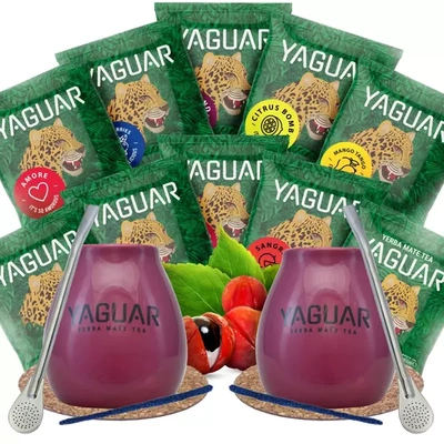 Set de inicio de Yerba Mate: muestras Yaguar 10x50g + Calabaza + Bombilla