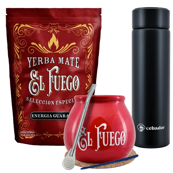 Set Yerba Mate El Fuego MOC 500g termo de calabaza