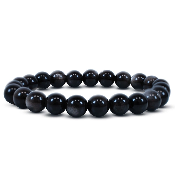 Forma: pulsera de obsidiana plateada pulida, ensartada en cordón elástico