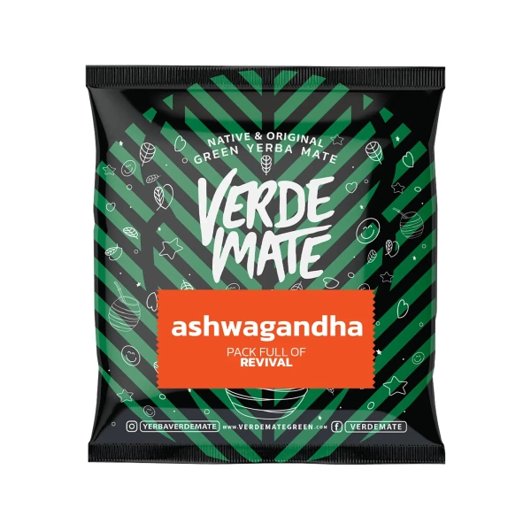 - Verde Mate Green Ashwagandha es una mezcla equilibrada de yerba mate verde brasileña y aditivos herbales, incluida la ashwagandha india.