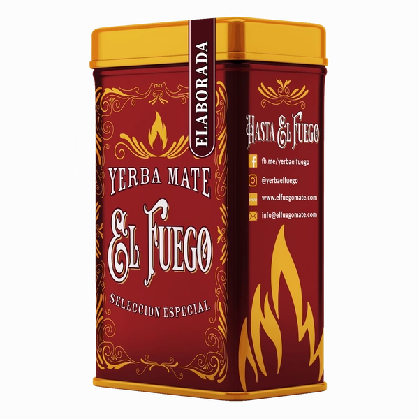 El Fuego Elaborada en lata es una yerba mate tradicional paraguaya. Contiene hojas de ilex paraguariensis de alta calidad, finamente cortadas molidas con ramitas, acompañadas de polvo. Se caracteriza por un aroma ahumado.