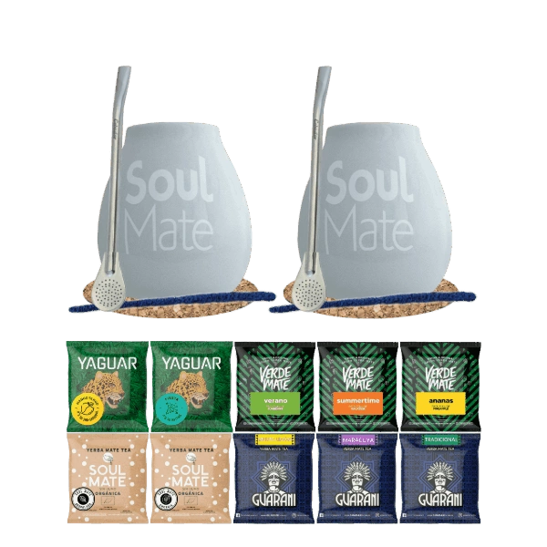 Yerba Mate Set 10x50g Calabash Marmol Bombilla