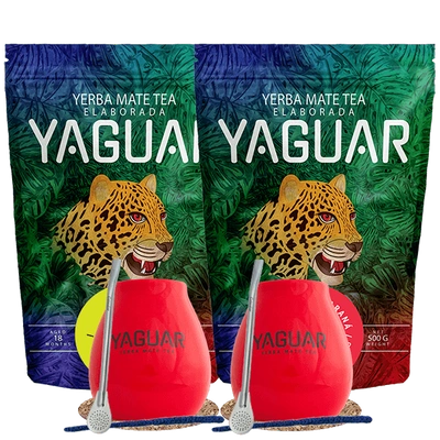 Yerba Mate Yaguar Energia 500 g + Yaguar Limon 500 g + Accesorios - set para parejas