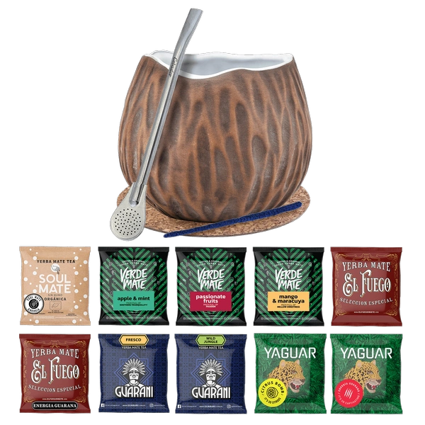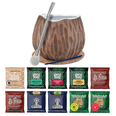 Set de inicio de Yerba Mate: muestras Yaguar 10x50g + Calabaza + Bombilla