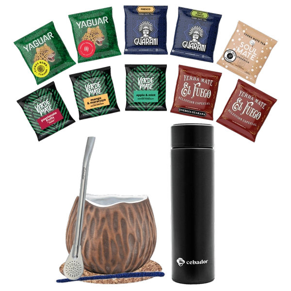 Set de Yerba Mate para dos: muestras 3×50g + 2x Calabaza + 2x Bombilla