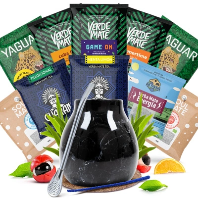 Set de Yerba Mate: muestras 10x50g + Calabaza + Bombilla