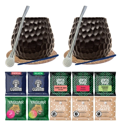 Set de Yerba Mate: 2x Mate Taza "Honeycomb" + 2x Bombilla + Muestras de Soul Mate y Guarani 10x50g (0,5kg) + Accesorios – para Dos