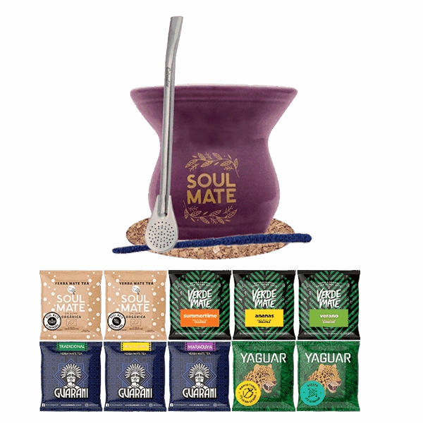Set de Yerba Mate 10x50g 2x Calabaza + 2x Bombilla