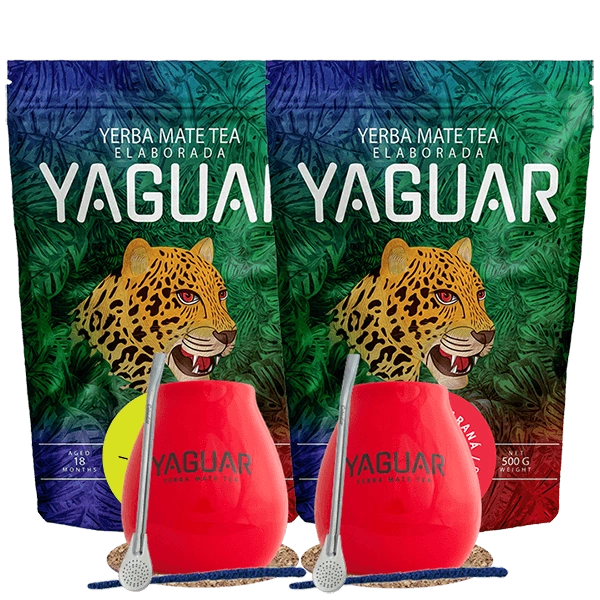 Yerba Mate Yaguar Energia 500 g + Yaguar Limon 500 g + Accesorios - set para parejas