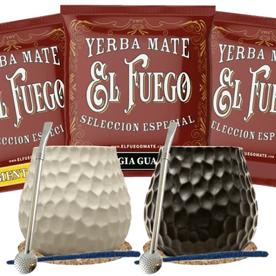 Yerba Mate Set El Fuego calabaza + bombilla para dos