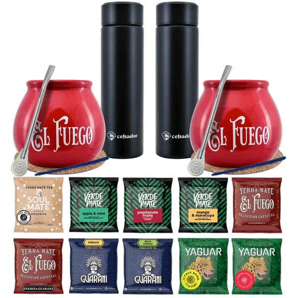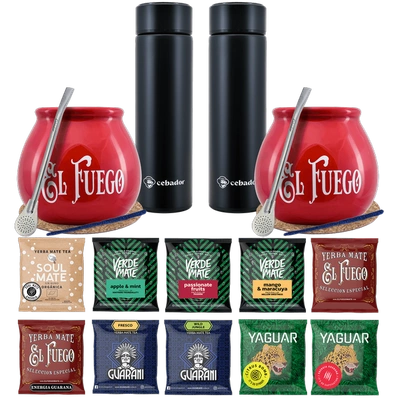 Set Yerba Mate El Fuego MOC 500g termo de calabaza