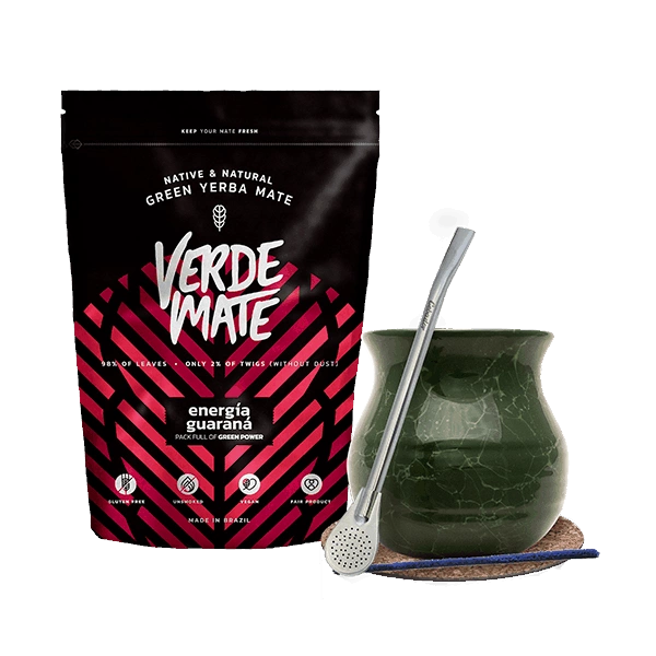 Set de Yerba Mate Verde Mate Energia Guarana 500g TermoMate + Bombilla